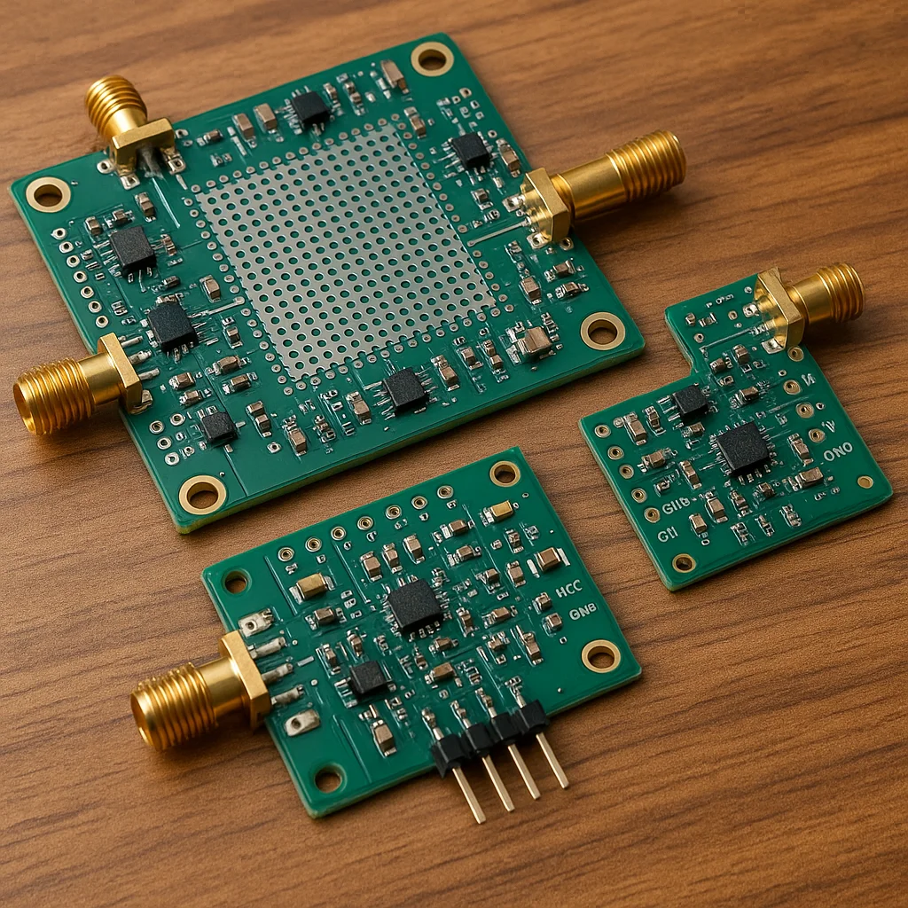 • Evaluation boards for LNAs, mixers, synthesizers, RF SoCs, and converters